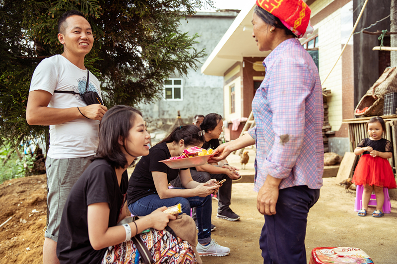 樸實的村民拿出家裏的土特產來招待誌願者們