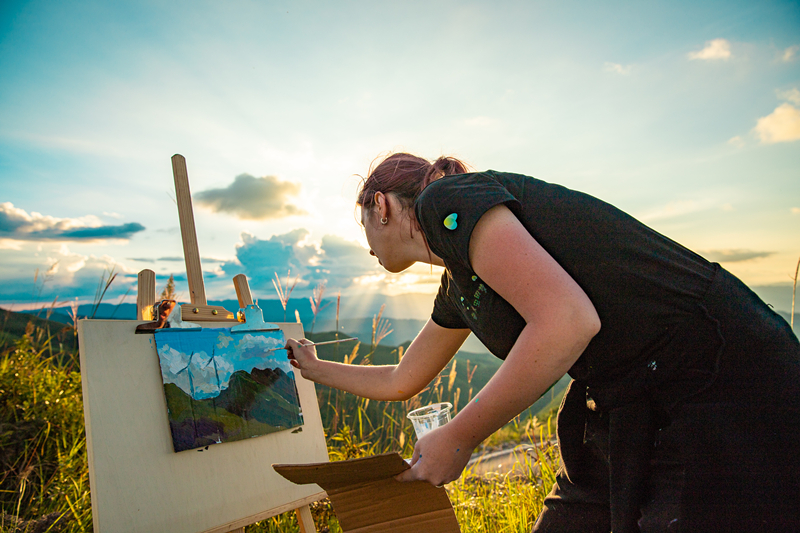 最後調一下色,作品(pǐn)《下者氽的山與雲》就能完成了