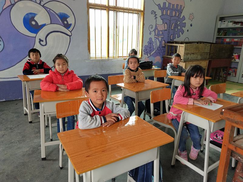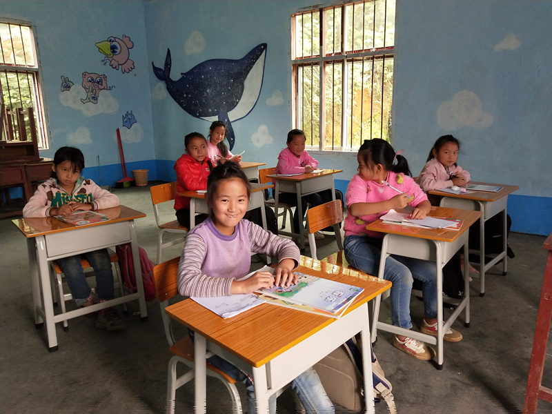 在煥然一新的教室裏用(yòng)上嶄新的桌椅,孩(hái)子們的臉上露出了開心的笑容。