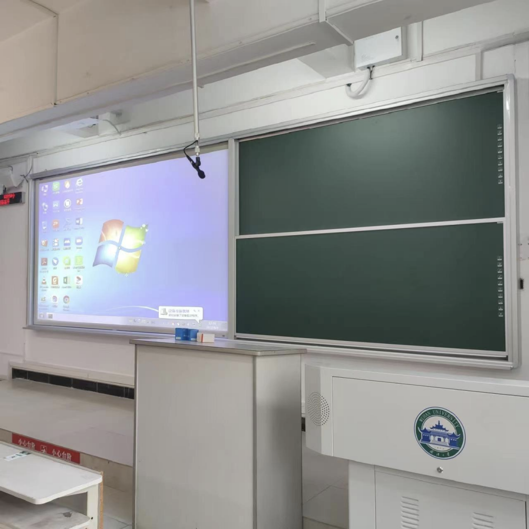 “打破傳統課堂教學模式,將(jiāng)先進智能(néng)技術(shù)融入其中,以生為本(běn)、打造(zào)更人性化、交互(hù)式的(de)教學環(huán)境(jìng)”是此次智慧教室整體改造工程的(de)主要目標。“搶(qiǎng)工期,促進度,抓質量”,蜜桃my.1688.com视频股份,幫助國防科技大學短時間內實現專業的教室部署。教師在兩側黑板(bǎn)的板書內容可(kě)直接同(tóng)步到中間屏幕(mù),同步展示、及時保存、掃碼分(fèn)享,涵蓋了粉筆(bǐ)書寫、多人觸(chù)控互動、多媒體教(jiāo)學的功能(néng),實現了傳統教(jiāo)學黑板和(hé)可(kě)感知互動黑板之間的無縫對接。全麵提升國(guó)防科(kē)技大學課堂教學效率,還原老師傳統板(bǎn)書習慣,讓(ràng)學生和老師暢享(xiǎng)智慧課堂,輕鬆實現課程的高清錄製、遠程直播、課程上傳和(hé)積累,利於一流課程建設、學科競賽(sài)和教育教研等教學活動的交流、共(gòng)享與回顧。