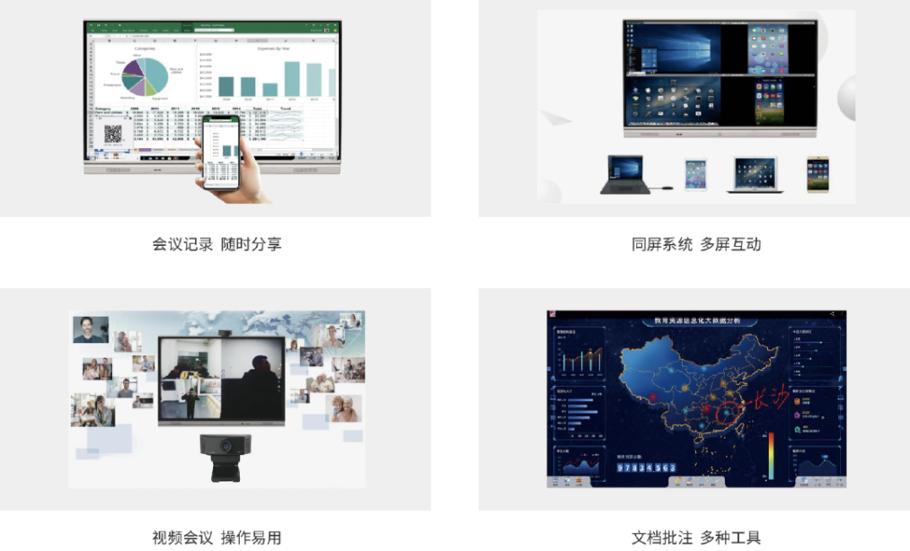 與PPT圈點隻(zhī)能由1人在(zài)電腦前操作鼠標完成(chéng)的傳統會(huì)議相比(bǐ),大尺寸的會議平板可以讓更多參與者在屏幕前分(fèn)享靈感。