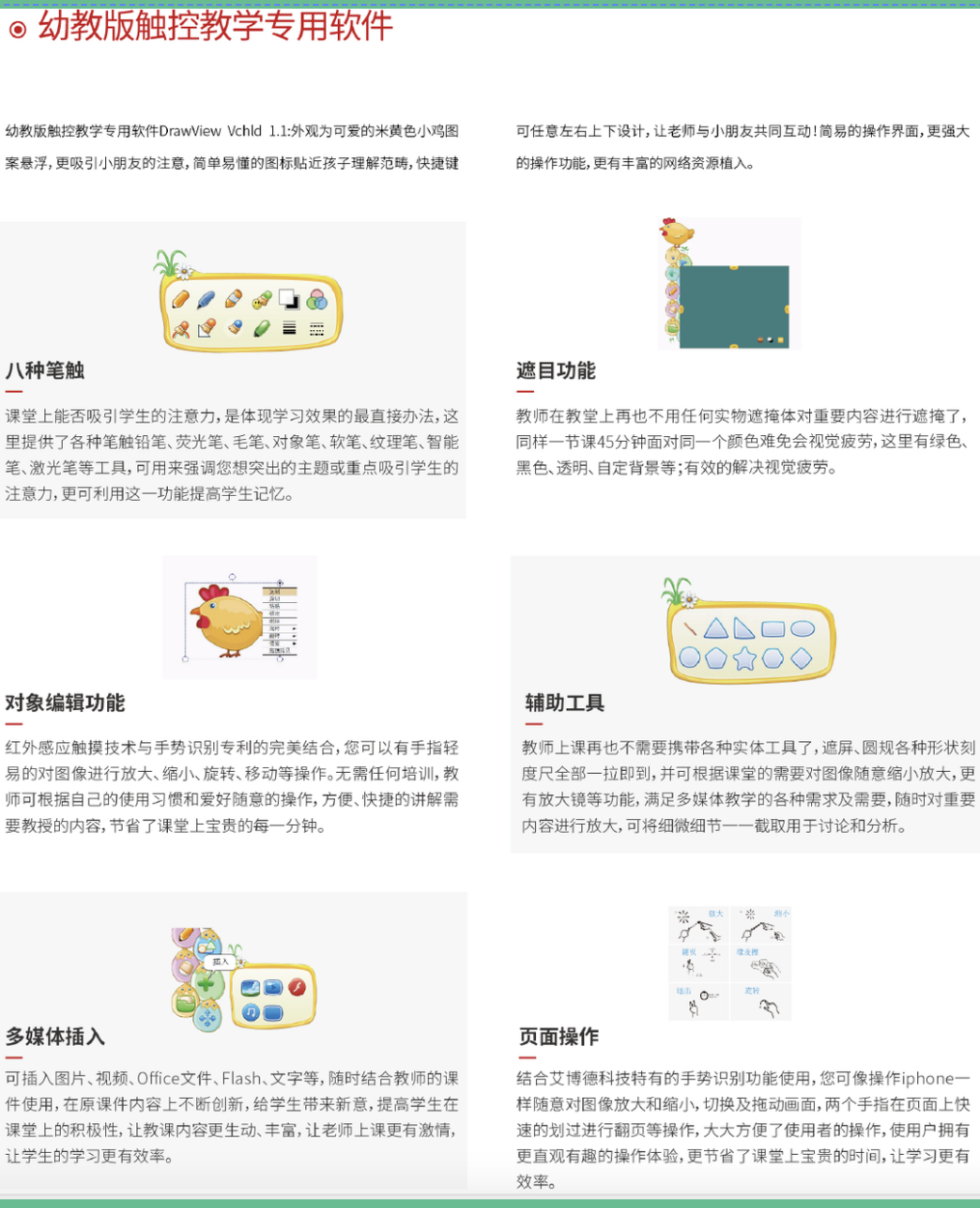 蜜桃my.1688.com视频特別推出(chū)了幼教交互式電子白板,實現了(le)從“單向灌輸”到“雙向(xiàng)互動”,寓教於樂,激發幼兒學(xué)習興趣和(hé)求知欲,豐富幼兒的感官認識,實現互動課堂(táng)與(yǔ)遊戲化教學。