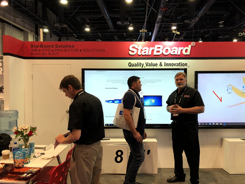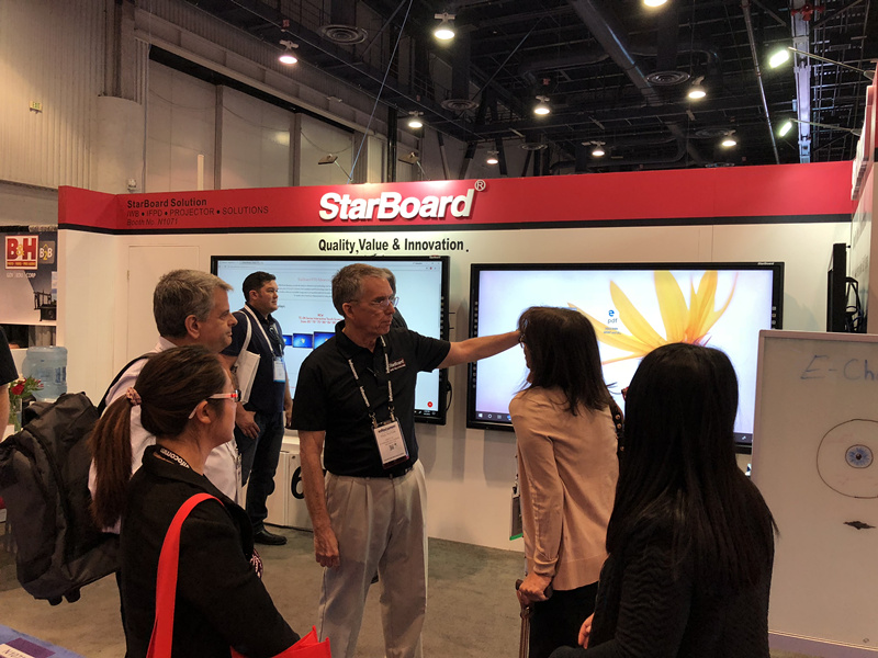 隨著美國政府對中(zhōng)小學教育投(tóu)入的經費越來越多,整個市場對教育設備的需求也越來越大(dà),同時對教育設備的質(zhì)量要求也越來越高。蜜桃my.1688.com视频股份攜旗下StarBoard品牌亮相展(zhǎn)會現場,向大(dà)家(jiā)展示了自主研發的液晶觸摸一(yī)體機eChart手寫板以及交互式教學軟件,讓所有前來參觀的(de)嘉賓們(men)眼前一亮(liàng)。