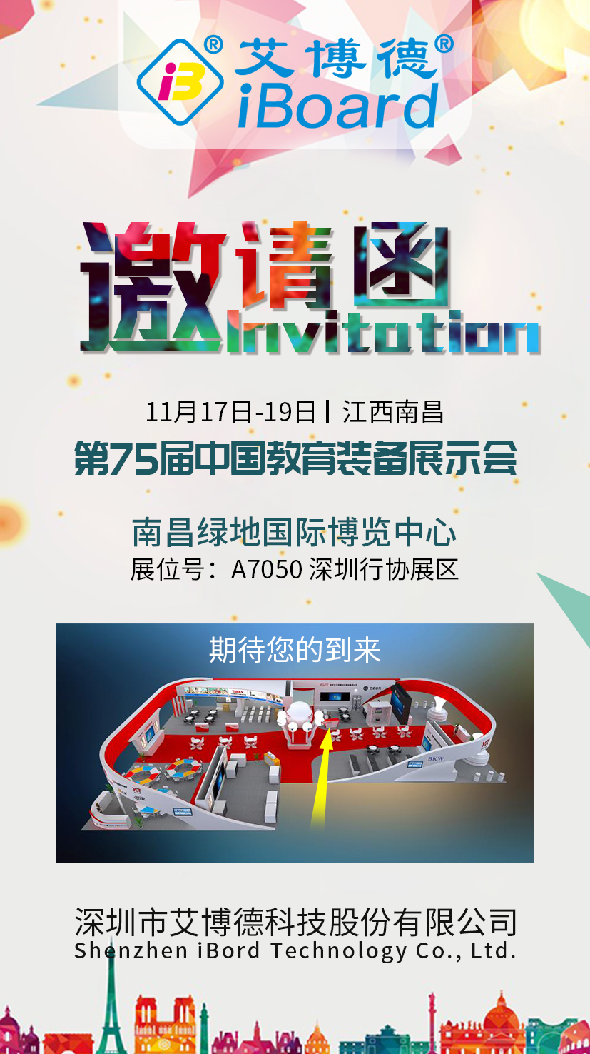誠(chéng)摯邀請您蒞臨第75屆中國(guó)教育裝備展示會,深圳市蜜桃my.1688.com视频(dé)科技股份有(yǒu)限公司將以更貼心的智慧教學(xué)服務,展示領先的智慧教育(yù)整體解決方(fāng)案。