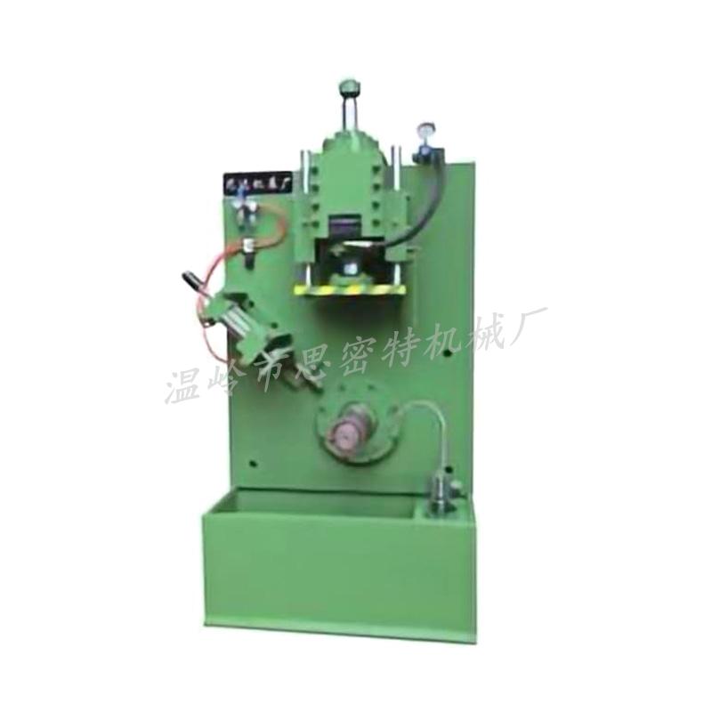 立式輪輻旋壓機(jī),包(bāo)括橫向油缸、下主軸、封閉力(lì)係、皮帶輪、縱向油缸、卸料月牙板、縱向滑板、操作係統、仿形板(bǎn)、仿形(xíng)閥、旋輪軸承室、初旋輪、壓緊油缸、上主軸箱、卸料導向杆、精旋(xuán)輪、輪輻模芯、自(zì)動進料裝置、橫向滑板、電機、電動出料滾道,其特征在於:所述封閉力係,包括機座、立柱(zhù)、活動梁、頂梁,其一側設有自動進料裝置,另一側設有電動出料滾道;所述精旋輪和初旋(xuán)輪由縱向油缸、縱向(xiàng)滑板、橫向油(yóu)缸、旋(xuán)輪軸承室和橫向滑板(bǎn)帶(dài)動完成設計曲線運動;所述仿形閥通過仿形板的形狀控製橫向油(yóu)缸和縱(zòng)向油缸(gāng)的運動軌跡,並與相應形狀的輪輻模芯結合。該立式輪輻旋壓機,提高輪輻性(xìng)能,延長(zhǎng)壽命,保障行車安全。