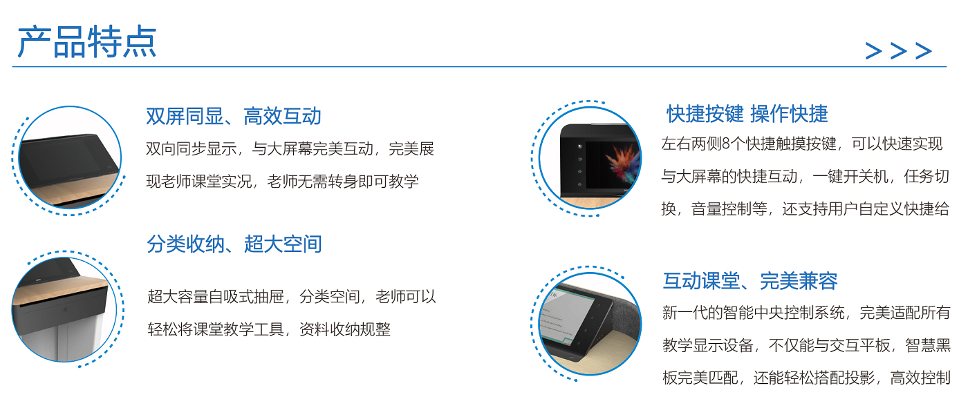 7. 講台支持通過講台(tái)屏幕對一體機的(de)畫麵進行控製。同時支持(chí)同步顯示一體機畫麵,老師講課無需轉身背對學(xué)生,提高授課效率。