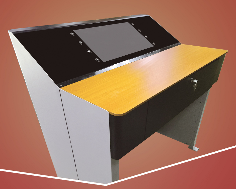 6. ★覆蓋3mm鋼化玻璃,保(bǎo)護屏幕(mù)安(ān)全。屏幕融合在講台中,無突出邊(biān)角撞傷學生,無(wú)法在沒(méi)有工具的情況下拆除。
