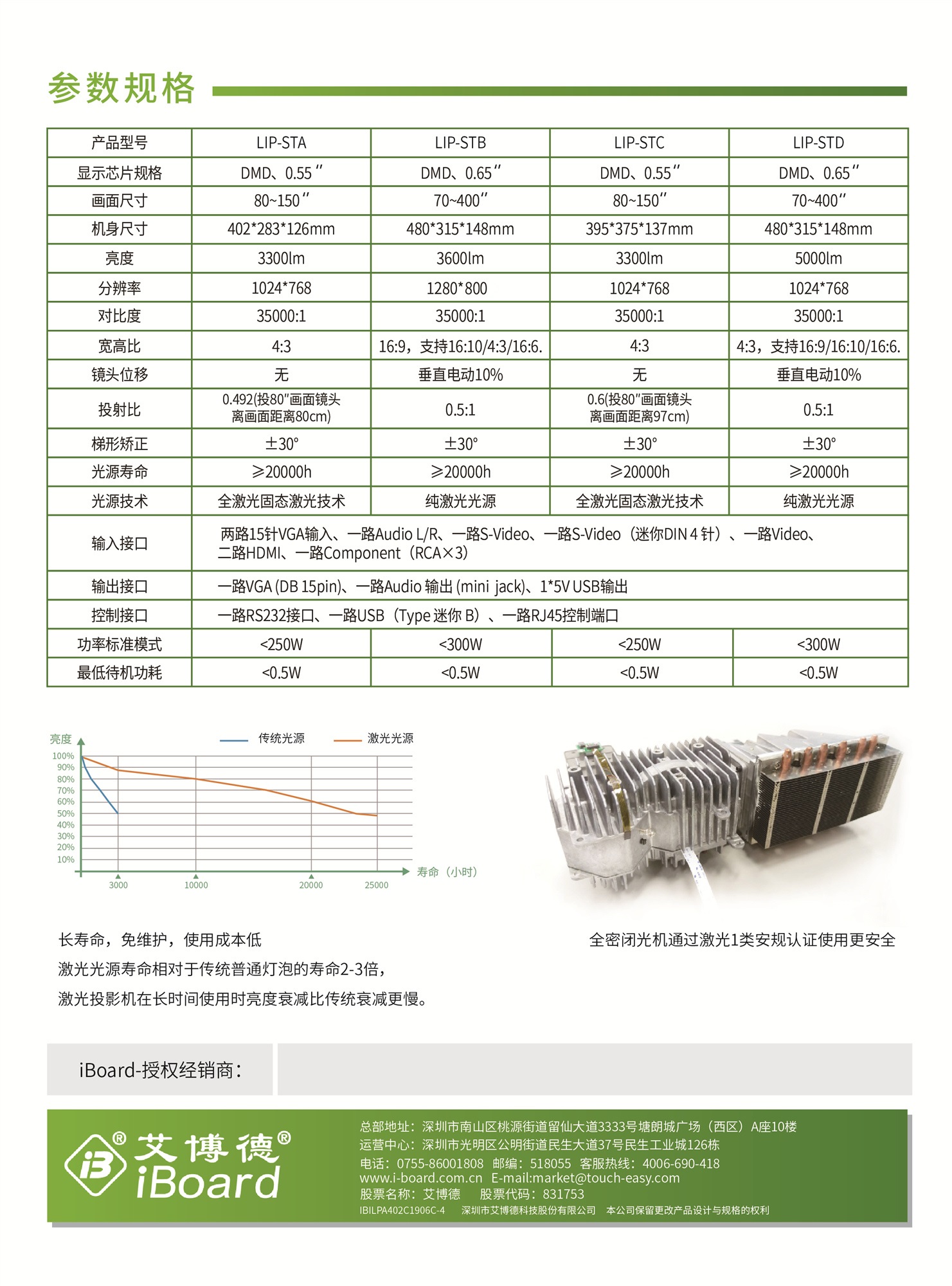 全封閉光機模組設計,具極佳之防塵效果,有效的保證激光光源的壽命;