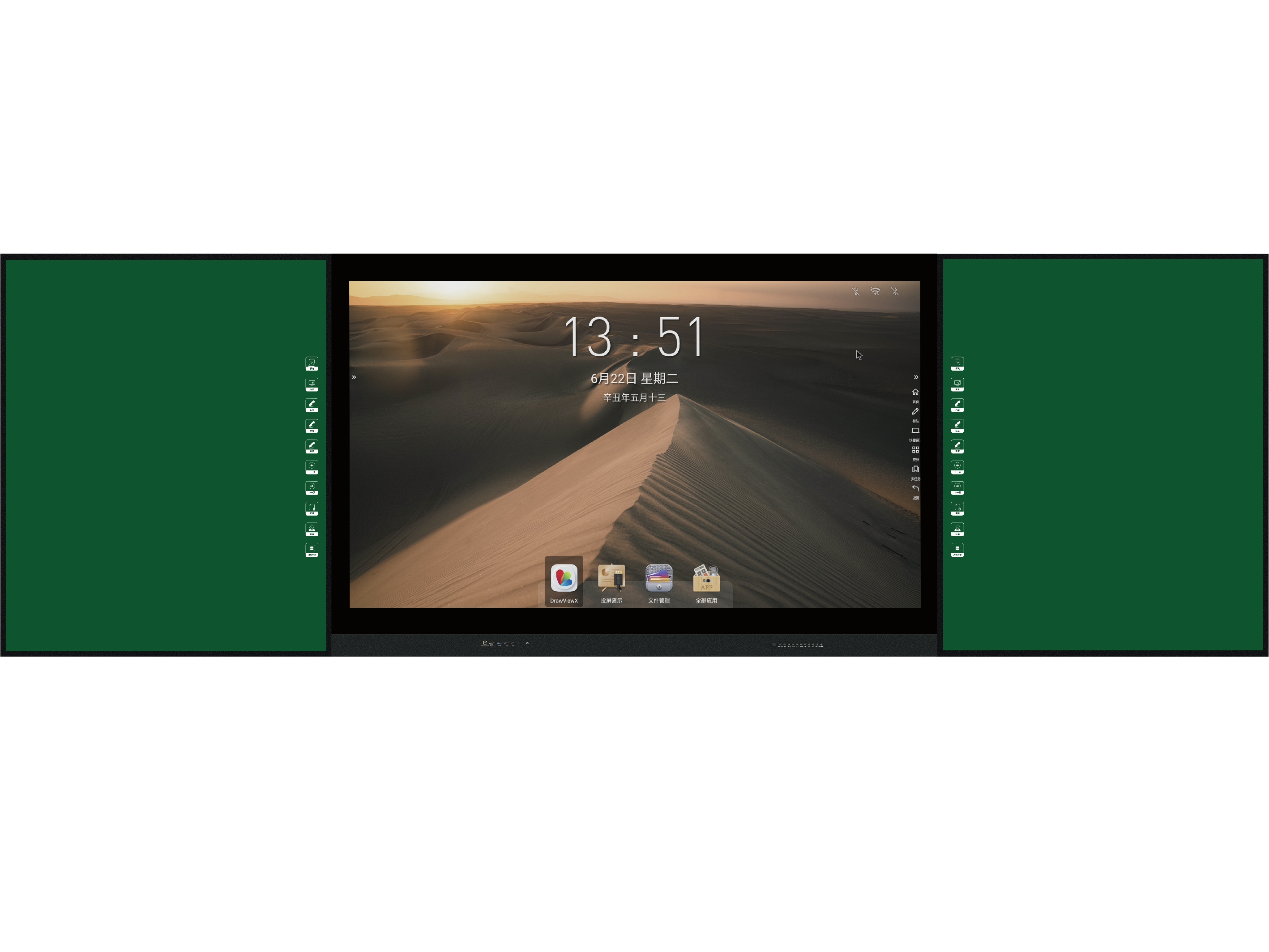 互聯黑板(電子黑板)幫助老師(shī)不用改(gǎi)變傳統粉筆書寫的習慣(guàn),板書進入互動(dòng)教學時代(dài),激發學生學習(xí)興趣, 幫助學生守護用眼健康,兩側學生通過大屏查看左右側板書,板書記錄,隨時分享,課...